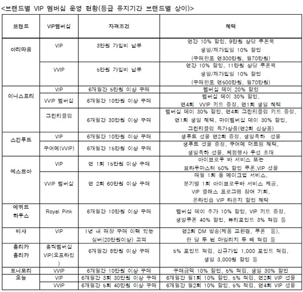 특히 최근 각 브랜드숍에서는 [VIP 등급]을 더욱 강화하고 있다.