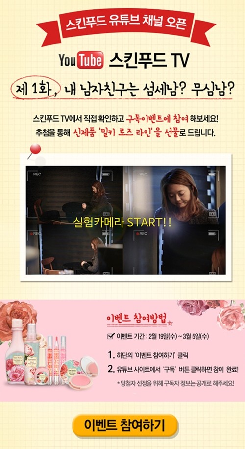 한편 스킨푸드는 이번 유튜브 공식 오픈을 기념해