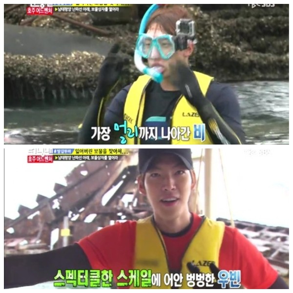 망설임 없는 잠수로 1등으로 미션을 완수했다.그러나 김우빈은 캥거루 탈을 쓰고 높이뛰기 미션에 실패하고,