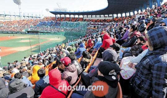 프로야구의 인기는 꽃샘추위도 막지 못했다.지난 8일, 9일 열린 프로야구 시범경기 개막 2연전에