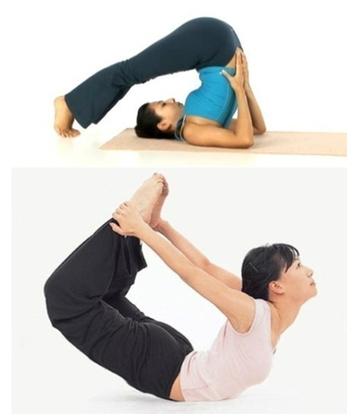 '활 자세'는 엎드린 상태에서 상체와 하체를 동시에 위로 올린 후 두 팔로 양 발목을 잡아당기는 자세다. 이는 소화 불량과 변비에 효과적인 것으로 알려졌다.