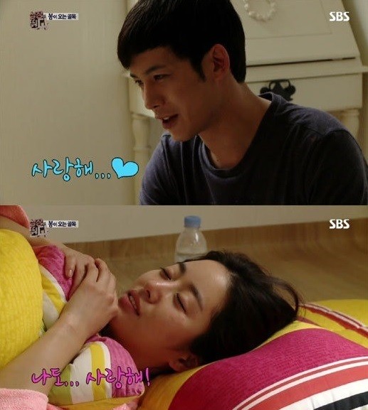 배우 박기웅과 전혜빈 사이에 핑크빛 기류가 포착됐다.지난 11일 방송된 SBS '심장이 뛴다'에서는 서울에서 5분 이내 현장 도착률이 최하위인 광진소방서로 발령을 받은 멤버들의 모습이 그려졌다.이날 숙소에서 아침을 맞은 박기웅은 자고 있는 전혜빈에게 가서 "이런 말해도 괜찮을지. 있잖아 사랑해"라고 말했다. 이에 전혜빈도 "나도 사랑해"라고 화답하며 로맨틱한 분위기를 자아냈다.알고 보니 이는 멤버들이 입소 첫날 만든 숙소의 공동수칙이었다. 서로의 기운을 북돋아주기 위해 '눈 뜨자마자 사랑합니다 해주기'라는 약속을 지킨 것이다.박기웅과 전혜빈은 이름 아침 잠이 덜 깬 부스스한 얼굴에도 서로에게 사랑을 고백하는 묘한 모습으로 웃음을 자아냈다.['심장이 뛴다' 박기웅 전혜빈, 사진=SBS '심장이 뛴다' 방송 캡처]
