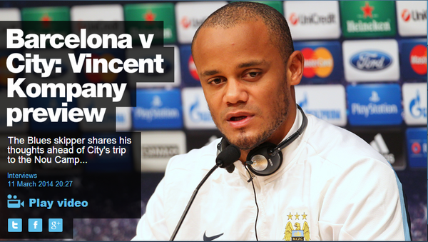 맨체스터 시티의 주장인 뱅상 콤파니(벨기에)가 바르셀로나를 상대로 최선을 다한 팀의 선전에 대한 자랑스로움을 표했다.콤파니는 현지시각으로 13일 오후에 열린 기자회견에서 차기 챔피언스리그에선 그 누구도 두려워하지 않을 것임을 강조했다.바르셀로나를 상대로 각각 0-2(홈), 1-2(원정), 도합 4-1 스코어로 16강에서 좌절한 맨체스터 시티는 중앙 수비수인 데미첼리스의 퇴장과 페예그리니 감독의 터치라인 금지 징계 등 악재가 겹치며 불운한 경기를 할 수 밖에 없었다.맨체스터 시티는 비록 경기는 패배했지만, 팀의 주장이자 중앙 수비수로 필드를 누빈 뱅상 콤파니의 끈기와 열정은 왜 그가 세계 최고의 선수인지 알 수 있었기에 충분했다. 이는 지난 위건을 상대로 무기력하게 패배했던 FA컵에서의 분위기와는 사뭇 달랐다.콤파니는 "우리가 가진 모든 걸 쏟아부었다. 몇 분을 남긴 시점에서 우리는 반드시 득점을 올렸어야 했다" 라는 인터뷰를 남기며, 남은 시즌뿐만 아니라 다음 시즌도 새롭게 무장할 것이란 각오를 전했다.