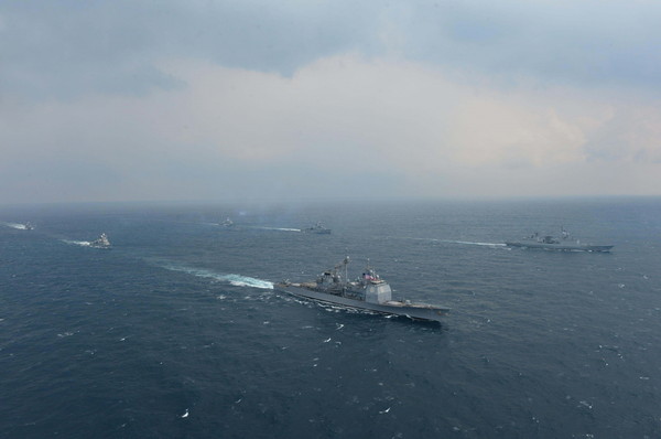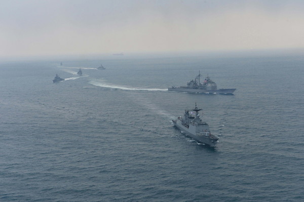 해군은 14일 동·서·남해 상에서 [독수리 연습] 일환으로한미 연합해군이 기동훈련을 실시했다고 밝혔다.이날 기동훈련에는