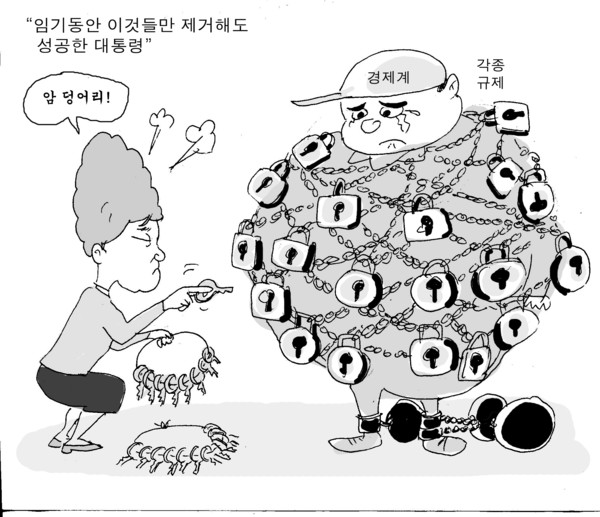 만평 각종 규제로 묶인 경제계