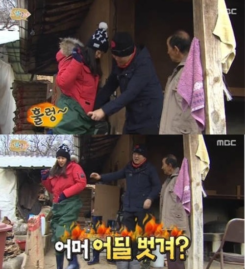 이에 김구라는 "너 왜 그래. 여배우가 똥 냄새 풍기면 안 된다"라며 그녀의 작업복을 벗기려고 한 것. 당황한 이하늬는 "아니 어딜 벗겨"라고 말해 웃음을 자아냈다. 이후 이하늬는 우사를 청소했다.