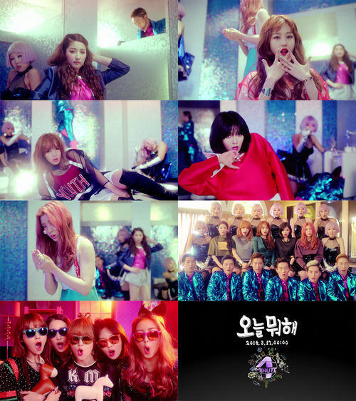 포미닛 티저포미닛이 '오늘 뭐해' 뮤직비디오 티저 영상을 공개했다.포미닛은 15일 오전 포미닛 공식 유투브 채널을 통해서 '오늘 뭐해' 코믹버전 티저 영상을 선보였다. 이번 '오늘 뭐해' 티저 영상에서는 포미닛 멤버들이 최초로 타이틀곡 '오늘 뭐해'의 일부를 공개하며 이에 맞춰 어깨를 들썩이는 독특한 댄스와 그로테스크한 느낌의 장면을 연출했다.포미닛 티저는 이제껏 선보인 포미닛의 도발적이고 섹시한 카리스마의 이미지와는 달리 독특하고 코믹한 콘셉트라 눈길을 사로잡았다. 특히, 포미닛 멤버들이 각자 몽환적인 표정으로 티저 영상 처음부터 끝까지 어깨를 들썩이는 동작을 반복하며 웃음을 선사했다.시스루와 스포티한 스타일을 매치한 전지윤은 화장실에 누워서 오묘한 표정과 함께 어깨춤을 선보여 웃음을 자아내고, 막내 권소현은 깜찍한 표정연기를 선보이며 귀여운 이미지를 강조했다.남지현은 한 팔을 올린 채로 도도한 포즈를 취했으나 뒤로 보이는 화장실 배경과 대조되며 반전의 재미를 만들어 냈다. 허가윤은 빛나는 아이브로우로 포인트를 주면서 물오른 미모를 과시했고 현아는 코믹한 춤을 추면서도 새빨간 상의와 흰색 셔츠를 매치해 강렬한 인상을 안겼다.한편, 포미닛은 17일 0시 전 온라인 음원사이트를 통해 타이틀곡 '오늘 뭐해'를 비롯한 미니 5집 음반의 음원을 공개한다.[포미닛 티저, 사진=큐브엔터테인먼트]