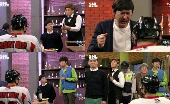 이날 'SNL 연아를 부탁해'에서는 아이스하키 유니폼을 입은 남성의 뒷모습이 등장하고, 그에게 여러 명의 남성들이 김연아 선수에 대한 당부를 전해 웃음을 안겼다.