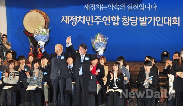 [포토]새정치민주연합 발기인대회, 손 맞잡고 인사하는 김한길-안철수