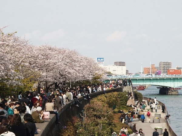 강을 가로지르는 체리 브리지로 지나가 볼 것을 추천한다.이곳에서는 스미다 강변 산책로를 가득 메우며 줄지어 있는 벚꽃 행렬을