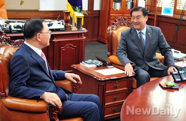 [포토]대화 나누는 정홍원 국무총리와 강창희 국회의장