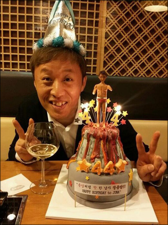 방송인 정준하가 생일을 맞아 팬들에게 받은 '용암 케이크'를 공개했다.17일 정준하는 자신의 트위터에 "아이고, 이렇게 보잘 것 없는 날. 해마다 챙겨주는 우리 골수팬들. 정말 고마워. 진짜 너희들 생각해서라도 더 힘낼게"라는 글과 함께 한 장의 사진을 게재했다.공개된 사진 속에는 정준하가 특이한 모양을 한 케이크를 앞에 두고 브이(V)자를 그리며 환하게 미소짓고 있다.해당 케이크는 3월 18일이 생일인 정준하를 위해 팬들이 미리 준비한 것으로 보인다.해당 케이크에는 정준하의 나이를 나타내는 '44'라는 숫자와 "용암처럼 핫 한 남자 정용암! HAPPY BIRTHDAY to JUNA"라는 글이 써져있어 팬들의 사랑이 돋보인다.해당 케이크 가장 위에는 몸짱 정준하의 캐릭터로 보이는 미니어쳐가 자리해 있다.특히 해당 케이크는 '용암'을 표현한 것으로, 앞서 정준하가 MBC '무한도전'의 밀라노 특집을 위해 단기간 내에 많은 몸무게를 빼면서 살이 늘어지자 멤버들이 지어준 별명 '용암'을 유쾌하게 표현해 보는 이들의 시선을 모은다.한편, 정준하 용암케이크 소식을 접한 네티즌들은 "정준하 용암케이크, 귀엽다" "정준하 용암케이크, 생일 축하해요" "정준하 용암케이크, 정성 대단" "정준하 용암케이크, 기분 좋겠어요~" 등의 반응을 보였다.[사진 출처=정준하 트위터]