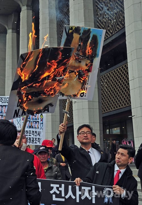 [포토]530GP 사건 진실규명 촉구 협의회 가두행진, 불타는 김정은 사진