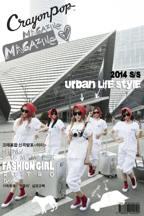 특히, Crayon Pop Magazine(크레용팝 매거진), 2014 S/S Urban Life Style(2014 S/S 어반 라이프 스타일), 크레용팝 신곡발표 '어이', SPRING/SUMMER FASHION GIRL(스프링/섬머 패션 걸), 기획취재 '가물치' 심경고백 등의 문구와 함께 바코드가 첨가된 디자인으로 마치 패션 잡지의 표지를 연상케 한다.
