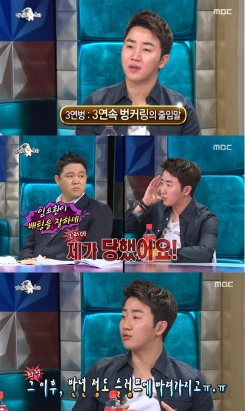 홍진호가 임요환과 3연벙 사건 이후 슬럼프가 찾아왔다고 고백했다.19일 방송된 MBC '황금어장-라디오스타'(이하 라디오스타)에는 '내 위주로 해주세요' 특집으로 허지웅, 홍진호, 사이먼디(쌈디), 지코가 출연해 솔직한 입담을 뽐냈다.이날 홍진호는 3연벙(3연속 벙커링의 줄임말)에 말려 임요환에게 패한 과거 에피소드를 공개했다.MC 규현은 "임요환과 홍진호의 경기에 많은 게임팬들이 치킨과 맥주를 시키고 기다렸는데 배달이 오기도 전에 경기가 끝났다"고 말했다.이에 홍진호는 "4강이었다. 임요환이라 지기 싫어서 죽어라 연습했는데 임요환이 초반에 모 아니면 도 전술을 썼다"고 당시 상황을 설명했다.이어 "벙커링이라고 성공하면 5분 만에 끝나고 아니면 반대인데 내가 당했다. 임요환이 과거에도 이 전술을 쓴 적이 있다. 그 작전을 한 번 썼으니 똑같은 걸 안 할 거라 생각했다. 그 전략을 배제하고 플레이를 했는데 또 당한 거다"고 덧붙였다.임요환에게 충격의 3연패를 당한 홍진호는 "팬들이 똑같은 전술에 3번씩이나 당하냐고 질타를 많이 했다"라며 "그 이후 반년 정도 슬럼프에 빠졌다"고 후유증을 털어놨다.[홍진호 임요환 3연벙 사건 언급, 사진=MBC '라디오스타' 방송 캡처]