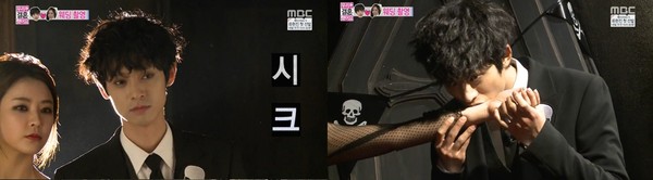 이어 정유미는 블랙 시스루 드레스를 입고 시크한 매력을 뽐내며 등장했다. 이어 정준영 역시 블랙으로 통일된 턱시도를 입고 등장했다.