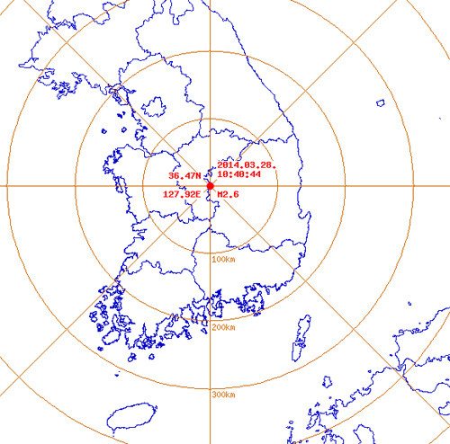 28일 기상청은 오전 10시 40분께 경북 상주시 서북서쪽 23km 지역(북위 36.47, 동격 127.92)에서 규모 2.6의 지진이 발생했다고 전했다.이번 지진은 문경에서도 감지된 것으로 전해지며 현재 주민들은 매우 긴장한 상태라고.기상대에 따르면 지진의 진원 부근인 추풍령을 비롯한 일부 지역에서는 건물이 약하게 흔들리는 저도의 진동이 감지된 것으로 전해졌다.현재 별다른 피해는 없는 것으로 알려졌지만 만약의 경우를 대비해 촉각을 곤두세우고 있다.한편, 상주 2.6지진 소식을 접한 네티즌들은 "상주 2.6 지진, 무섭다" "상주 2.6 지진, 곧 700년 주기로 큰 지진 온다던데" "상주 2.6 지진, 우리나라는 진짜 지진나면 끝이야" 등의 반응을 보였다.[사진 출처=기상청]