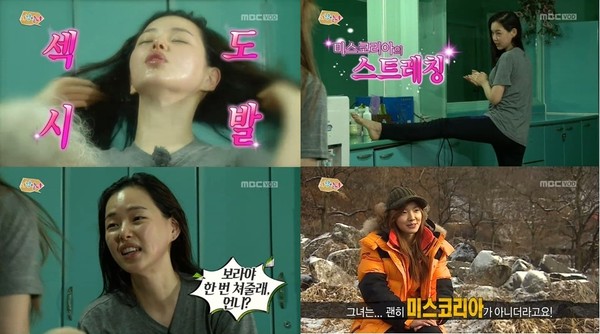 '사남일녀' 이하늬가 목욕탕에서 섹시미를 자랑해 화제다.지난 28일 방송된 MBC '사남일녀'에서는 '소사랑' 아빠-엄마와의 마지막 이야기가 그려진 가운데 이하늬가 엄마를 모시고 목욕탕을 찾는 모습이 전파를 탔다.이날 이하늬는 신보라와 함께 엄마 아빠와의 헤어짐을 준비하며 엄마를 모시고 목욕탕을 찾았다. 이하늬는 목욕을 마친 뒤 자신만의 방법으로 얼굴 마사지를 하며 꿀피부를 선보여 눈길을 끌었다.특히, 스킨로션을 바르며 난데없이 섹시한 포즈를 취하며 섹시미를 뽐내 보는 이들을 폭소케 했다. 신보라는 "언니 방금 자세 무척 섹시했다"고 칭찬을 아끼지 않았다.또한, S라인 몸매 비결로 '틈새 스트레칭'을 꼽은 이하늬는 직접 다리를 쫙 찢어 보여 신보라를 놀라게 만들었다.한편, 사남일녀 이하늬 소식을 접한 네티즌들은 "사남일녀 이하늬, 너무 예뻐" "사남일녀 이하늬, 완전 호감이다" "사남일녀 이하늬, 재밌더라" "사남일녀 이하늬, 와 피부가 어쩜 저래" 등의 반응을 보였다.[사진 출처=MBC 사남일녀 방송화면 캡처]