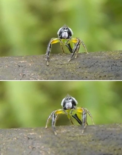 깜짝 놀란 거미가 포착됐다.최근 한 온라인 커뮤니티 게시판에는 '깜짝 놀란 거미'라는 제목으로 사진과 영상이 올라와 눈길을 끌었다.공개된 사진은 호주 퀸즐랜드의 한 아마추어 사진작가가 찍은 것으로 알려졌다. 이 사진작가는 우연히 거미 한 마리를 발견했고, 카메라를 가까이 들이대자 거미는 깜짝 놀라는 듯한 표정을 지었다.특히, 눈을 동그랗게 뜨고 깜짝 놀란 거미는 영화나 만화에서 볼 수 있을 법한 포즈를 취하고 있어 보는 이들을 미소 짓게 만들었다.'깜짝 놀란 거미' 사진을 접한 네티즌들은 "깜짝 놀란 거미 귀여워", "거미도 표정이 있었나?", "깜짝 놀란 거미 표정 살아있네!", "깜짝 놀란 거미 만화 속 비주얼", "깜짝 놀란 거미 신기하다" 등의 반응을 보였다.[깜짝 놀란 거미, 사진=온라인 커뮤니티]