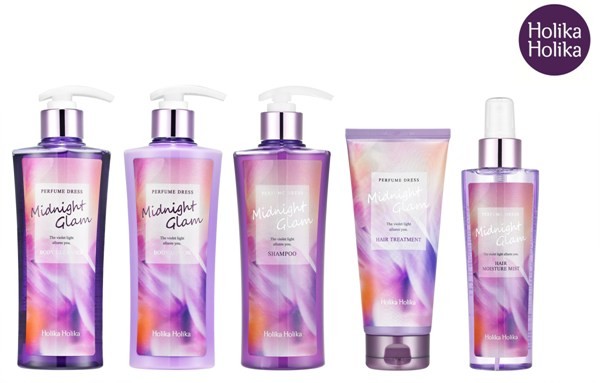 [퍼퓸 드레스 미드나잇글램 헤어 라인]은 샴푸, 트리트먼트, 수분미스트 3종으로 구성됐다.
