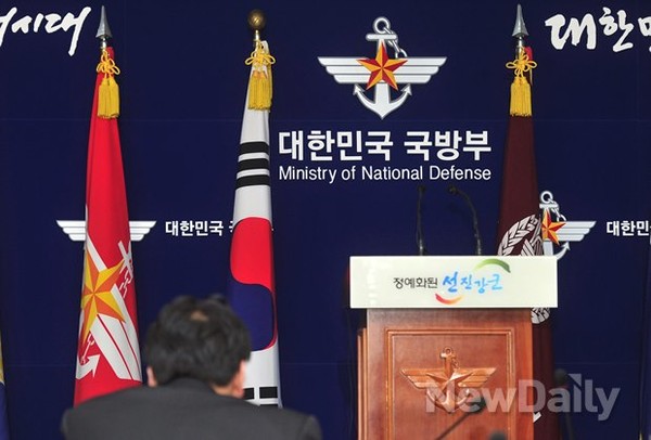 31일 오후 서울국방부 브리핑룸에서 취재진들이 국방부의 입장발표를 기다리고 있다.