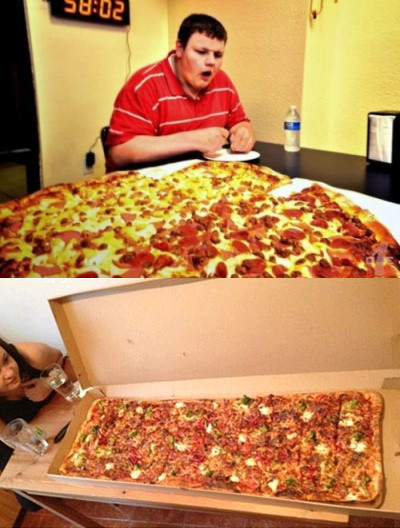 6.8kg 초거대 피자가 등장했다.최근 각종 온라인 커뮤니티 게시판에는 '6.8kg 초거대 피자'라는 제목으로 사진이 올라와 네티즌들의 관심을 끌었다.공개된 6.8kg 초거대 피자는 미국 샌프란시스코에 위치한 '8벅스 피자'라는 이름의 레스토랑에서 출시한 것으로 알려졌다. 이 피자는 길이 76.2cm, 무게 6.8kg으로 밀가루 총 3.9kg, 치즈 1.6kg의 재료가 사용됐다.6.8kg 초거대 피자는 1시간 안에 다 먹을 경우 2500달러(한화 260만원)의 상금을 제공한다. 도전비는 60달러로 두 명이 짝을 이뤄 참가할 수 있으며, 현재까지 15팀이 시도했다.하지만 소문난 푸드파이터들과 식신들이 도전했음에도 느끼함과 어마어마한 크기 때문에 지금까지 성공한 팀은 없다.'6.8kg 초거대 피자'를 접한 네티즌들은 "6.8kg 초거대 피자 한 번 먹어보고 싶어", "그래도 맛있겠다", "6.8kg 초거대 피자 크기 어마무시해", "이런 걸 왜 만든거야? 고도의 상술이다", "6.8kg 초거대 피자 정준하가 도전해보면 안 되나?" 등의 반응을 보였다.[6.8kg 초거대 피자, 사진=온라인 커뮤티티]