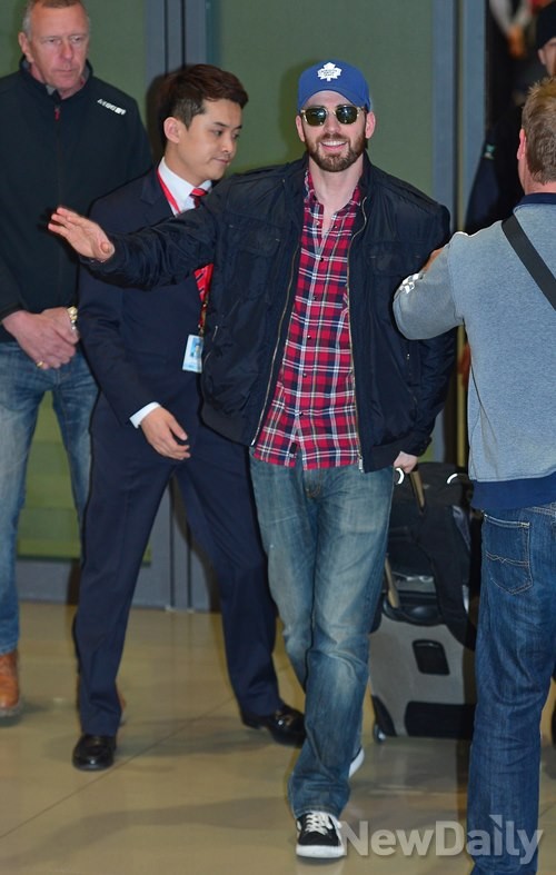 크리스 에반스는 별다른 화답 없이 출국장을 빠져나가자