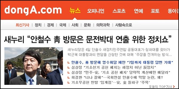 대한민국의 국민을 저평가하여 과거처럼 기만할 수 있다고 착각한 듯 ‘새정치’를 앞세운 안철수 새민연 공동대표의 낡고도 추악한 행태가 성숙하고 상식적인 국민의 눈살을 찌푸리게 한다. 정당정치의 근간인 공천을 포기하겠다고 한 자신의 모순을 선거에 중립적이어야 하는 박근혜 대통령에게 덮어씌우려는 안철수의 추태가 지금까지 어떤 정치인의 행태보다도 더 추해 보인다. 3월 30일 박근혜 대통령에게 ‘기초선거 무공천’을 논의하기 위한 영수회담을 제안했던 안철수 새정치민주연합 공동대표는 4일 오전 청와대에 찾아가 면담을 신청하면서 “박 대통령이 야당을 정국운영의 진정한 협력자로 생각한다면 (회동) 요청에 대해 심사숙고해 받아줄 것으로 믿는다”며 “4월 7일까지 박근혜 대통령의 답변을 기대하겠다”는 주장을 했다. 철부지의 장난 같은 짓을 안철수 새민연 공동대표가 하고 있다.‘박근혜 대통령에게 면담을 신청하는 이유’에 대해 안철수 새민연 공동대표는 “박 대통령에게 (기초선거 무공천 논의 등) 여러가지 제안을 했지만 응답이 없어 오늘 대한민국 국민의 한 사람으로 면담을 신청한다”고 밝히면서, ‘청와대가 면담을 받아들일 것 같느냐’는 질문에 “최선을 다해 노력하겠다”는 대답을 했다고 뉴스1이 전했다. 뉴스1은 “안 대표는 이날 오전 11시 20분께 청와대 영빈관 앞 분수대에 하차한 후 도보로 면회실까지 이동했다. 안 대표는 청와대 1층에 마련된 영풍문에서 직접 박 대통령 면담 신청서도 작성했다”며 “안 대표의 영접은 박준우 청와대 정무수석이 직접 맡았으며 신청서 작성 후 박 정무수석과 면담했다”고 전했다. 이에 중앙일보를 비롯한 우파성향의 인터넷 사이트들에 대부분의 네티즌들은 안철수 대표를 향해 ‘유치한 추태를 부린다’는 비판적 반응을 보였다.‘기초(자방자치단체)선거 공천폐지’라는 안철수-김한길 새민연 공동대표의 지방선거 승부수는 정당정치의 근간에 도전하는 것으로, 애당초 잘못된 공약을 했던 박근혜 대통령이 뒤늦게나마 공약을 취소한 것은 결과적으로 잘된 판단으로 평가된다. 자유민주사회에서 정당조직이 살아남을 수 있는 핵심적 요소는 바로 정당의 공천에 있는데, 풀뿌리 민주주의의 핵심적 영역인 기초지방자치단체의 장과 의원에 대한 공천을 폐지한다는 것은, 부패한 국회의원들에 의해 자행되는 공천 부패와 비리를 근절하지 모르지만, 정당정치의 근간을 허무는 것이다. 고로 공천비리를 다른 법으로 엄벌하되, 이렇게 개인주의와 과잉민주주의가 병적으로 만연된 한국사회에서 정당의 조직을 건강하게 유지하기 위해서는 기초선거의 공천을 유지하는 것이 더 대의명분에도 맞다. ‘정당이 공천을 하지 말자’는 공약 자체가 잘못된 것이다.하지만 정치철학이 모자라는 것으로 평가되는 안철수 새민연 공동대표는 자신의 잘못된 약속(기초선거 공천폐지)에 집착하지 말고 지금이라도 국민들과 민주당원들에게 사과하고 “기초선거에 공천하겠습니다”라고 정당정치의 대의명분에 항복하면 된다. 그런데 박원순 서울시장후보와 문재인 대선후보를 위해서 민주당 밖에서 도우미 역할을 하면서 정당정치를 파괴하는 데에 지금까지 악업을 쌓아온 안철수 새민연 공동대표는 마치 천벌을 받듯이 지금 정당정치와 선거실리에 맞지 않는 ‘기초선거 공천폐지’의 족쇄에 스스로 묶여서 헤매고 있다. 안철수 새민연 공동대표가 지금이라도 자신의 오판과 궤변을 사과하지 않고, 오히려 박근혜 대통령을 물고 늘어지면서, 기초공천 폐지 타령을 계속한다면, 자신과 새민연에 큰 패배를 안겨줄 것이다. 안철수와 김한길 새민연 공동대표들은 순리를 거스리며 자멸의 길로 가고 있다.이하 생략기사전문: http://allinkorea.net/sub_read.html?uid=29561§ion=section20§ion2=
