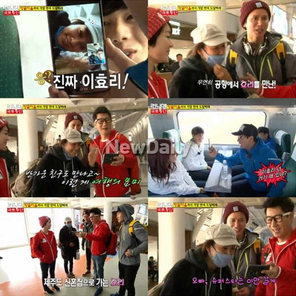 이날 지석진, 김정난, 김민종, 김종국은 김포공항에서 우연히 이효리를 만났다. 이효리는 제주도 신혼집으로 가기 위해 공항을 찾은 것. 그녀는 화장기 없는 얼굴에 모자와 마스크를 쓴 편안한 차림이었다.