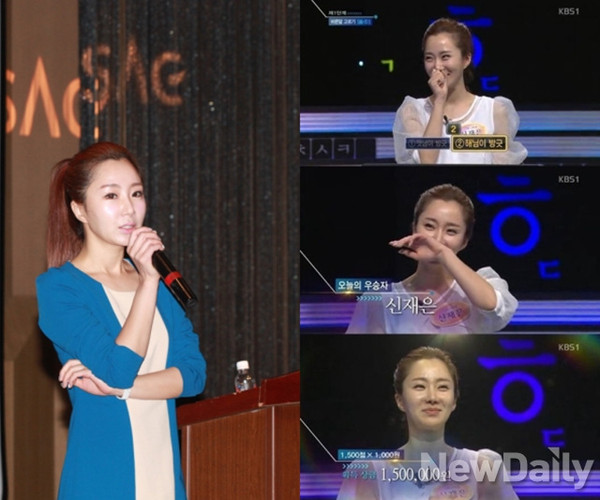 '우리말 겨루기'에서 우승을 차지한 신재은의 화려한 이력이 눈길을 끌고 있다.방송인 조영구의 아내이자 쇼호스트 출신 신재은은 지난 7일 방송된 KBS1 '우리말 겨루기' 봄 개편 특집에 출연해 3단계 십자말풀이에서 역전승을 거두며 150만원의 우승 상금을 획득했다.연세대학교 영문학과 출신인 신재은은 SBS '출발 모닝와이드', MBC '토요일엔 떠나볼까' 등의 리포터를 거쳐 현대홈쇼핑 쇼호스트, 롯데홈쇼핑 쇼호스트 등으로 활약했다. 지난해 추석특집으로 방송된 KBS2 '100 대 1'에서 최후의 1인으로 등극해 화제를 모았다.남편인 조영구와 함께 육아방송 '육아매거진'를 진행하고 있는 그녀는 2011년 남편과 나란히 서울종합예술학교 방송MC쇼호스트과 겸임교수로 임명되기도 했다.신재은은 현재 TV조선 '법대법'에 고정패널로 출연 중이며, 서울종합예술학교에서 '홈쇼핑의 이해'라는 과목을 가르치고 있다.[신재은 '우리말 겨루기' 우승, 사진=서울종합예술학교/ KBS1 '우리말 겨루기' 방송 캡처]