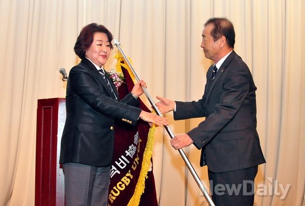 [포토]대한럭비협회 21대 회장 취임하는 박윤경 회장