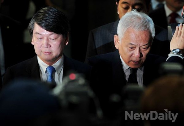 [포토]침통한 표정의, 안철수-김한길 공동대표
