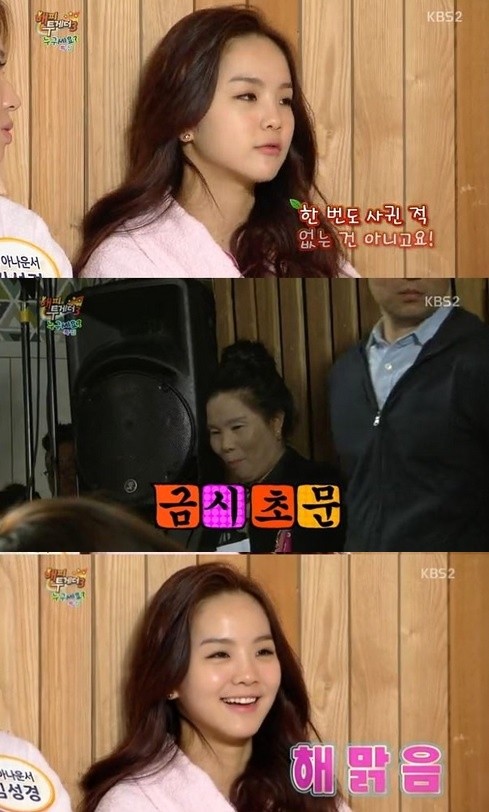 '해피투게더' 송소희가 연애경험을 깜짝 고백했다.지난 10일 방송된 KBS 2TV '해피투게더 시즌3'에서는 '누구세요' 국악소녀 송소희, 전 프로게이머 홍진호, 썸남 정기고, 전 아나운서 김성경, 개그맨 서태훈이 출연해 유쾌한 입담을 뽐냈다.이날 '해피투게더' 송소희는 연애 경험 질문에 "한 번도 사귄 적이 없는 건 아니다"라고 솔직하게 밝혔다.이어 "중학교 때 사귀어봤다"라며 "좋게 헤어졌다"고 덧붙였다.이에 녹화장을 함께 방문한 어머니는 예상치 못한 딸의 연애 경험 고백에 당황해하는 모습을 보여 웃음을 자아냈다.[해피투게더 송소희, 사진=KBS2 '해피투게더' 방송 캡처]