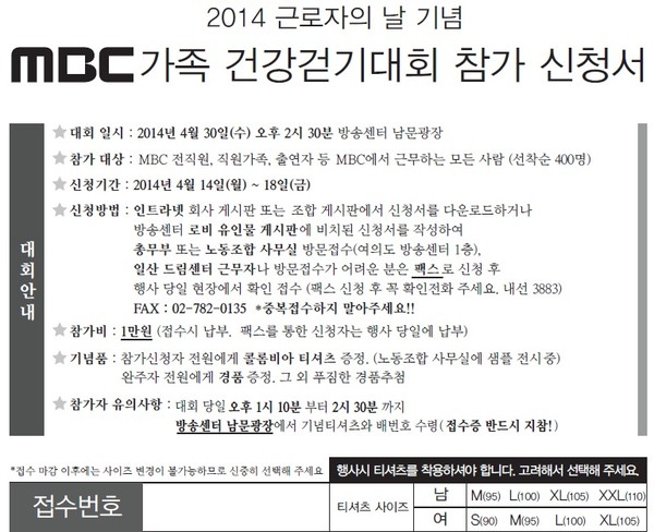 오늘(14일)부터 ‘MBC 가족 건강 걷기대회’ 참가 신청을 5일간 받는다고 한다. 오랜 기간 동안 해왔던 ‘MBC 근로자의 날’ 행사이다. 문제는 이 행사에 사용되는 돈이 바로 MBC 근로복지기금이라는 것이다. MBC 구성원 모두를 위한 기금인데, 마치 특정 노조가 이 기금으로 자신들이 주최하는 행사처럼 운영되고 있다는데 있다.