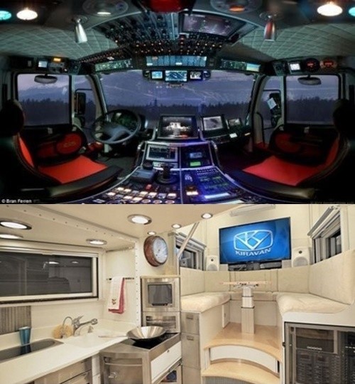 공개된 슈퍼 캠핑카 내부에는 마치 비행기 조종석을 연상케 할 만큼 많은 기능이 담겨 있다. 사무실과 부엌, 화장실, 침실 등을 비롯해 딸의 안전을 위해 22대의 카메라가 달려있으며, 캠핑카 지붕에는 낭만적인 분위기를 위한 텐트가 설치됐다.