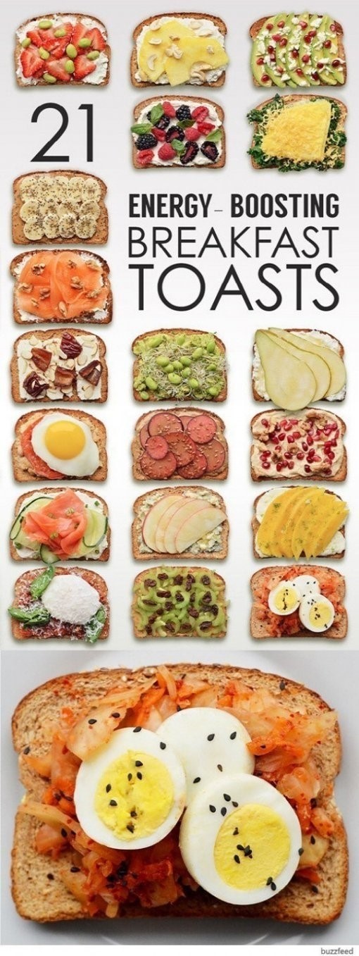 오늘 15일 미국의 한 유명 커뮤니티 사이트에 '에너지를 증강 시키는 21가지 아침 토스트'라는 제목의 사진이 게재됐다.
