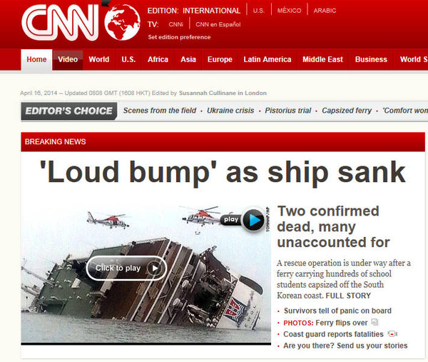 전남 진도 해상에서 발생한 여객선 침몰 사고가 각종 외신에 보도돼 눈길을 끌고 있다.