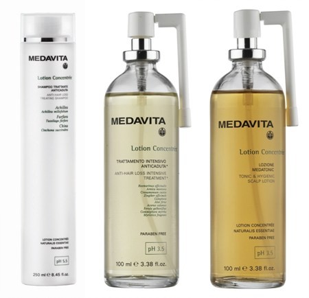 [모발 유실 방지 라인(LOTION CONCENTREE)] 3종을 제안한다.<메다비타>의 [모발 유실 방지 라인]은 자연 농축 성분의