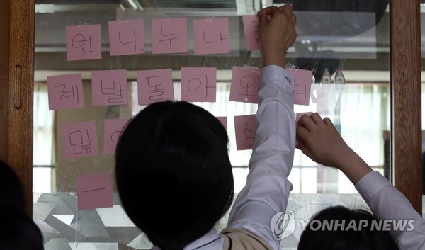 세월호 침몰사고 실종자들의 무사귀환을 빌었다. 구조에 관여할 수 없어서 빌었다. 추모객 중 하나가 “반드시 살아서 돌아오라”고 빌었다. 보태거나 뺄 말이 없었다. 추모객 전부가 “반드시 살아서 돌아오라”고 빌었다.단원고등학교 1·3학년 학생들과 인근 지역주민들이 세월호 실종자들에게 메시지를 띄웠다. 전달식은 18일 오후 8시 단원고 운동장에서 열렸다. 1,000여 명의 추모객이 모였다. ‘하나님 도와주세요’, ‘제발 제발 돌아와주세요’, ‘엄마, 아빠랑 꼭 맛있는 저녁 먹자’ 등 문구의 프랭카드를 머리 위로 들어올렸다.