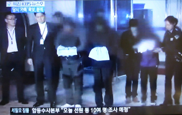 위 사진은 세월호 선장, 항해사, 조타수 등이 조사를 받으러 들어가는 장면이다.