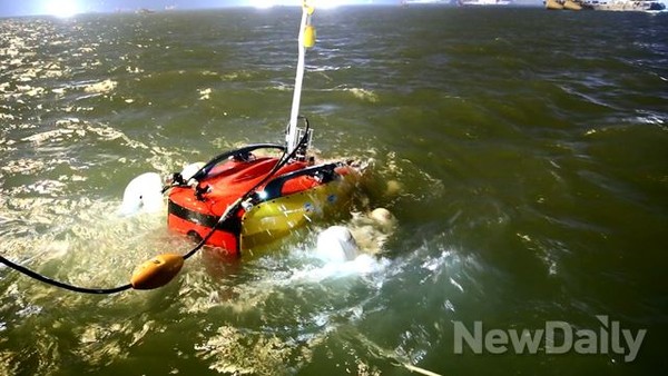 수중 무인 탐사로봇 '크랩스터'가 침몰한 세월호의 모습을 촬영하기 위해 사고현장으로 향하고 있다.