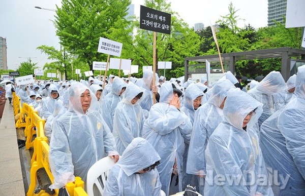 기독교복음침례회(구원파)가 28일 오후 여의도 KBS 앞에서 집회를 열었다.
