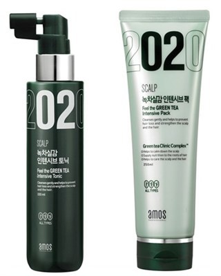 아모스의 [녹차실감 샴푸액]과 [인텐시브 팩]은 바이오 캄페롤과 백자인 성분에