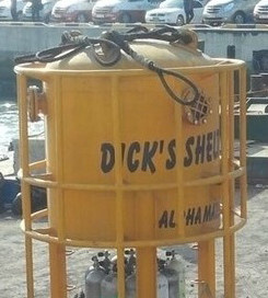 記者는 언론을 통해 李 씨 소유의 노란색 '다이빙벨'의 표면에 세겨진 명칭(DICK'S SHELTER)을 보고 기절초풍했다.