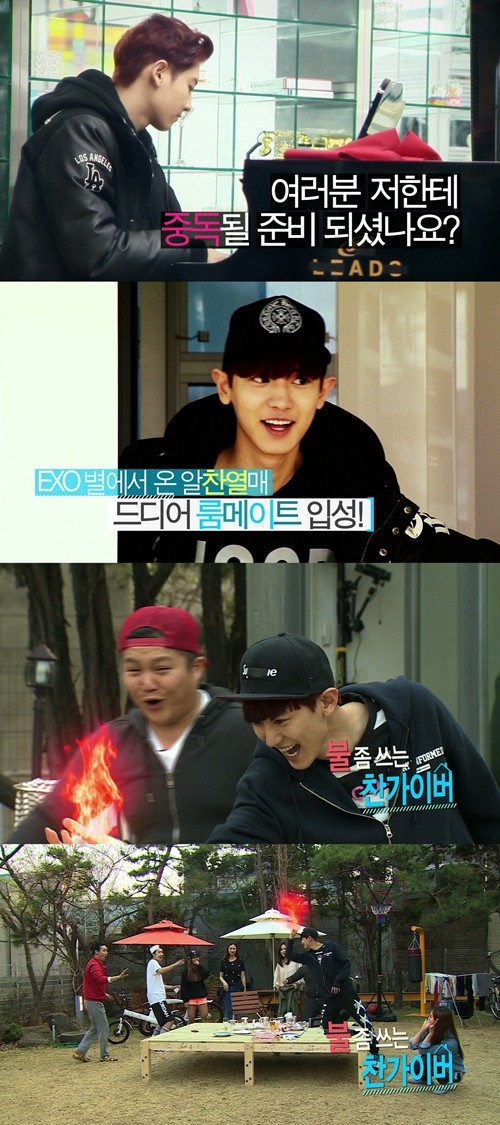 룸메이트 엑소 찬열이 화려한 불쇼를 선보인다.첫 방송되는 SBS '일요일이 좋다-룸메이트' 측은 1일 대세 아이돌 EXO(엑소) 찬열의 티저영상을 공개했다.공개된 영상에서 룸메이트 엑소 찬열은 수준급의 피아노 연주 실력으로 여심을 뒤흔드는 로맨틱한 모습을 보여줬다. 뿐만 아니라 엑소의 숙소가 공개돼 기대감을 증폭시켰다.또한, 엑소에서 담당하고 있는 불 초능력을 룸메이트들에게 선보이며 한바탕 폭소를 자아냈다.뿐만 아니라 룸메이트 신성우와 무려 24살이라는 띠동갑 두 바퀴 나이차를 극복하고, 지금까지 예능에서 볼 수 없었던 브로맨스의 케미 만들어낼 것으로 예고돼 눈길을 사로잡는다.한편, SBS '룸메이트'는 한 공간에서 타인과 인생을 공유하며 살아가는 新 트렌드 주거방식인 홈쉐어를 콘셉트로 삼은 프로그램. 5월 4일 오후 4시 20분 첫 방송된다.[룸메이트 엑소 찬열, 사진=SBS]
