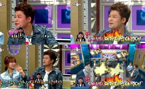 방송인 전현무가 가수 아이유에게 고기 사주겠다는 제안을 거절당한 일화를 공개했다.지난 4월 30일 방송된 MBC '황금어장-라디오스타'에는 배우 김민종, 전 농구선수 서장훈, 방송인 전현무, 걸그룹 씨스타 소유가 출연해 솔직한 입담을 뽐냈다.이날 소유는 "데뷔 초 프로그램에서 전현무를 처음 봤는데 멤버들 전화번호를 물어보더라. 나이 많은 오빠가 달라고 하시니까 알려드렸다. 그런데 바로 고기를 사준다는 문자가 왔다"고 밝혔다.이에 전현무는 "절대 사심을 갖거나 흑심을 품은 게 아니다. 바쁜 스케줄에 열심히 하는 모습이 안쓰러워서 그런 거다"고 해명했으며, MC들은 "우리가 볼 때 전현무가 더 안쓰럽다"고 말했다.또한, 전현무는 "아이유한테도 그런 적이 있다. 그런데 아이유가 '오빠보다 내가 더 많이 벌어'라고 하더라. 그때 이후로 고기수법을 끊었다"고 털어놔 폭소를 자아냈다.[전현무, 사진=MBC '라디오스타' 방송 캡처]