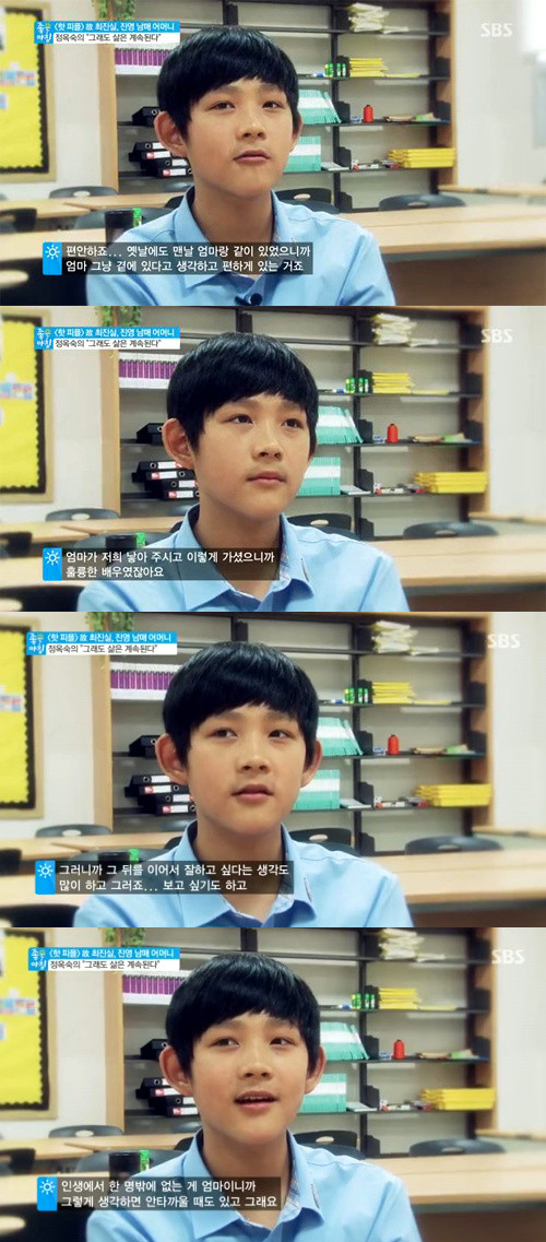고(故)최진실의 아들 최환희 군이 폭풍 성장한 모습으로 엄마에 대한 그리움을 전했다.2일 오전 방송된 SBS '좋은아침'에서는 故 최진실의 어머니인 정옥숙 씨와 함께 환희, 준희의 근황이 공개됐다.이날 최환희 군은 엄마 최진실에 대해 "옛날에도 맨날 엄마랑 같이 있었으니까 지금도 그냥 곁에 있다고 생각한다"라고 전했다.이어 "엄마가 훌륭한 배우였기 때문에 그 뒤를 이어서 잘하고 싶다는 생각도 많이 한다"라며 "보고 싶기도 하고 그립기도 하다. 인생에서 한 명밖에 없는 게 엄마니까.. 그렇게 생각하면 안타까울 때도 있다"고 털어놔 뭉클함을 자아냈다.또한, 최환희 군은 할머니, 동생과 함께 엄마의 묘를 찾아 눈길을 끌었다. 부쩍 자란 환희, 준희 남매를 보고 정옥숙 씨는 "세월이 금방 간다"고 말했다.한편, 故 최진실은 지난 2008년 10월 2일 스스로 생을 마감해 많은 이들의 안타까움을 샀다.[최환희 故 최진실 언급, 사진=SBS '좋은아침' 방송 캡처]