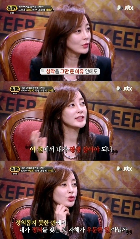 배우 김혜은이 음대 비리의 실상을 밝히며 성악을 그만 둔 이유를 고백했다.김혜은은 지난 1일 방송된 JTBC '썰전'에 출연해 음악계 입시비리를 다룬 드라마 '밀회'에 대해 "실제로는 더하다"고 말해 놀라움을 자아냈다.이날 MC 박지윤은 서울대 성악과 출신인 김혜은에게 실제 음악계와 비교해 드라마가 현실적인지 묻자 "더 하다. 이 정도는 아직 덜 나왔다고 생각한다"고 솔직하게 답했다.이어 김혜은은 "내가 성악을 그만두게 된 이유도 이것"이라며 "정의롭지 못한 판에서 정의를 찾는 게 우둔한 일은 아닐까라고 생각했다"고 털어놨다.또한, 김혜은은 "내가 연기와 방송을 좋아하는 건 보고 판단해 줄 수 있는 시청자와 관객이 있기 때문이다"고 전했다.'썰전' 김혜은 발언을 접한 네티즌들은 "썰전 김혜은 발언 정말이야?", "음대비리 어느 정도길래..", "썰전 김혜은 음대비리 발언 충격이다", "드라마 밀회 속 이야기가 현실이었구나", "썰전 김혜은 성악 그만 둔 이유 이해된다" 등의 반응을 보였다.[썰전 김혜은, 사진=JTBC '썰전' 방송 캡처]