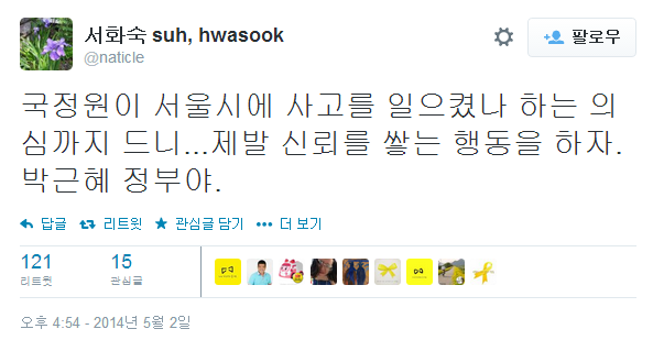 트위터에 "제발 신뢰를 쌓는 행동을 하자. 박근혜 정부야"사고터지자마자… 음모론 제기 이유도 박근혜 정부탓