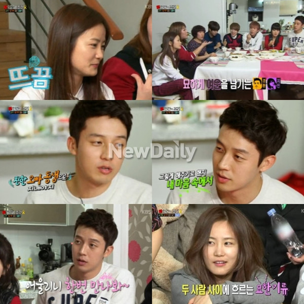 개그맨 허경환과 김지민 사이에 묘한 핑크빛 기류가 포착됐다.지난 3일 방송된 KBS 2TV '인간의 조건'에서는 '고기 VS 밀가루 없이 살기'에 도전하는 여자 멤버들의 모습이 그려진 가운데, 숙소 집들이에 허경환이 초대됐다.이날 숙소에서 식사를 하던 중 김영희는 "내 생각에는 '꽃거지' 할 때부터 사겼다. 나한테 셋이 같이 다녀야 한다고 하지 않았냐. 나는 스캔들 방어막이다. 이러다 진짜 둘이 결혼하면 축의금 만 원도 안 할거다"고 말했다.이에 허경환은 정색하며 "설마 네 만원 때문에 안할까?"라는 진심일지 장난일지 모를 발언을 하며 미묘한 여운을 남겼다.또한, 김지민은 허경환과 평소 연락을 하느냐는 김민경의 질문에 선뜻 대답하지 않았다. 이어 허경환은 "친한 오빠 동생으로 살아야지. 내 마음 속에서 그렇게 해주기로 했다"고 장난스럽게 말했고, 당황한 김지민을 얼굴을 들지 못했다.[김지민 허경환, 사진=KBS2 '인간의 조건' 방송 캡처]